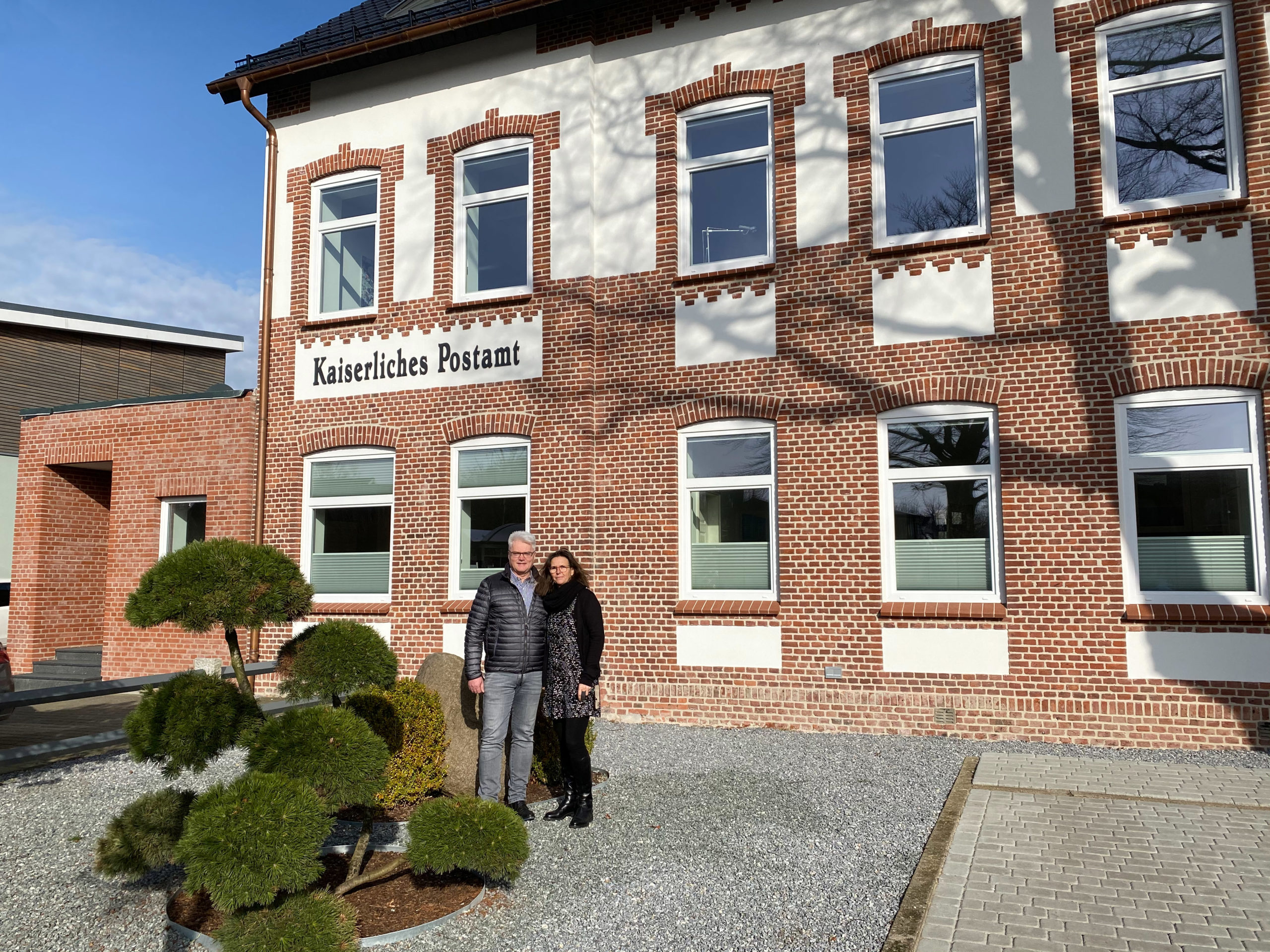 „Ich finde die Sanierung sehr gelungen“, kommentiert Bürgermeister Hans Christian Matzen das bis auf wenige Restarbeiten abgeschlossene Bauprojekt. Das frühere Postgebäude hatte Vorläufer-Stationen: Die erste befand sich in einem heute nicht mehr vorhandenen gegenüberliegenden Haus, in dem August Biörnsen residierte.
